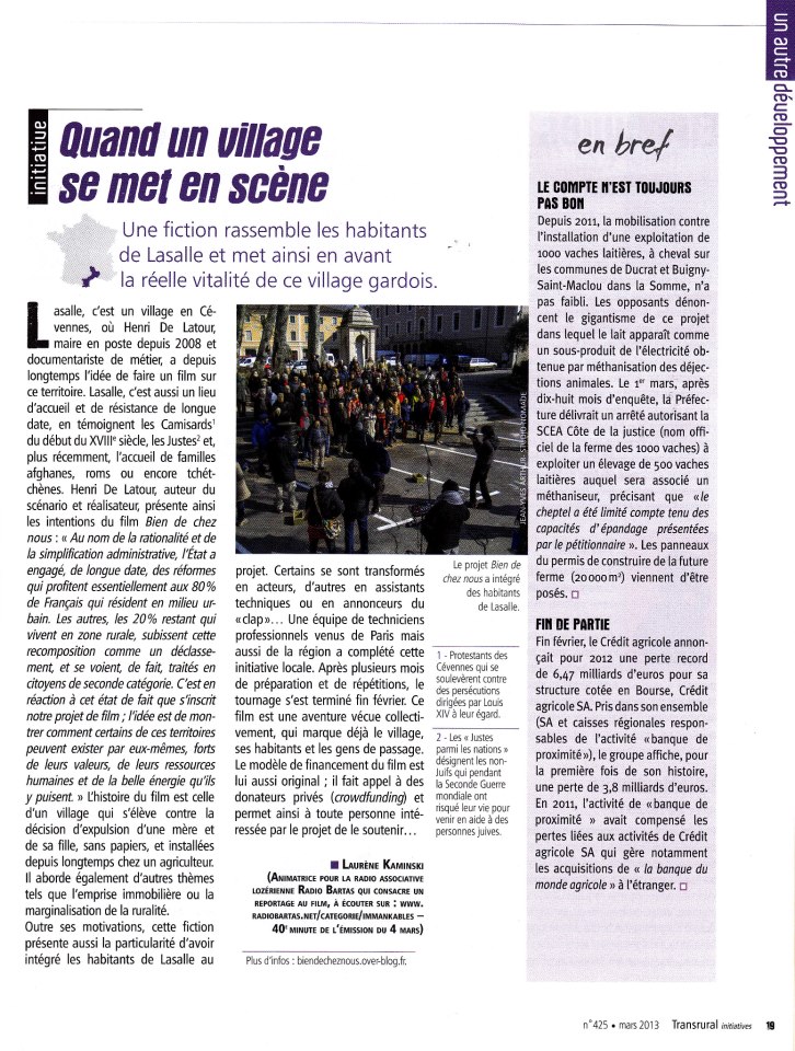 Laurène Kaminski, qui est en service civique à la radio, a écrit un article sur le reportage qu’elle a réalisé lors du tournage du film « Bien de chez nous » de Henri De Latour. www.transrural-initiatives.org